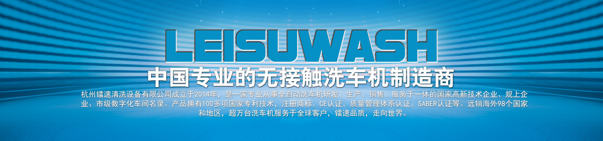 杭州鐳速清洗設備有限公司成立于2014年,是一家專業(yè)從事自動洗車機研發(fā)、生產、銷售、服務于一體的國家高新技術企業(yè),注冊資金2000萬元。匯聚了一批專業(yè)的技術創(chuàng)新團隊,與時俱進,不斷創(chuàng)新,研發(fā)生產出質量過硬、技術領先的全智能電腦洗車設備,是國內集洗護一體全自動汽車清洗系統的開拓者和領跑者。 鐳速公司一步一個腳印,一步一個臺階,通過不斷的努力和鉆研,厚積薄發(fā),從一家名不經傳的小企業(yè),走到今天,成為中國洗車機行業(yè)出口最多的企業(yè)。鐳速品質正逐步成為中國洗車機行業(yè)的高品質代名詞,真正進入國際一線洗車機行列,打造贏得全球信賴的中國品牌!
